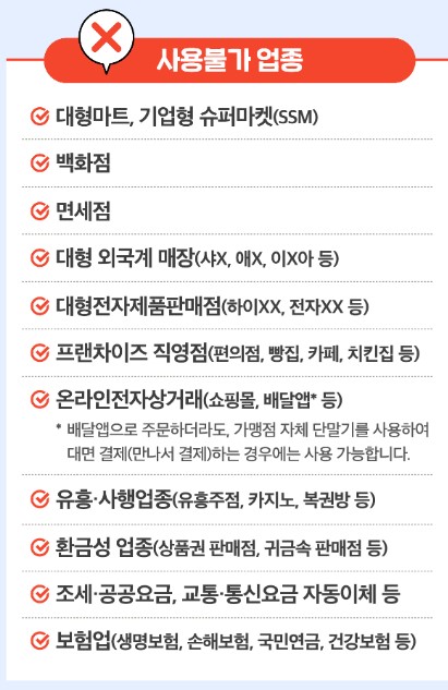 지금부터는 민생회복지원금이 사용 불가한 업종을 확실하게 알려드릴게요.